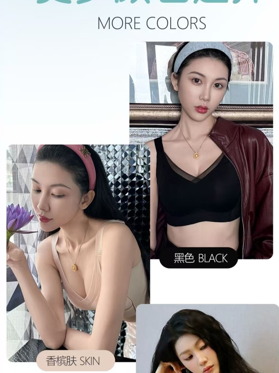 - 加高侧比和后比,有效收拢和修饰腋下多余脂肪/副乳